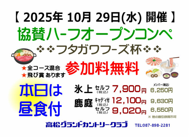 ☆ 氷上セルフ 参加費込(1Rセルフプレー・紅葉狩り弁当付)