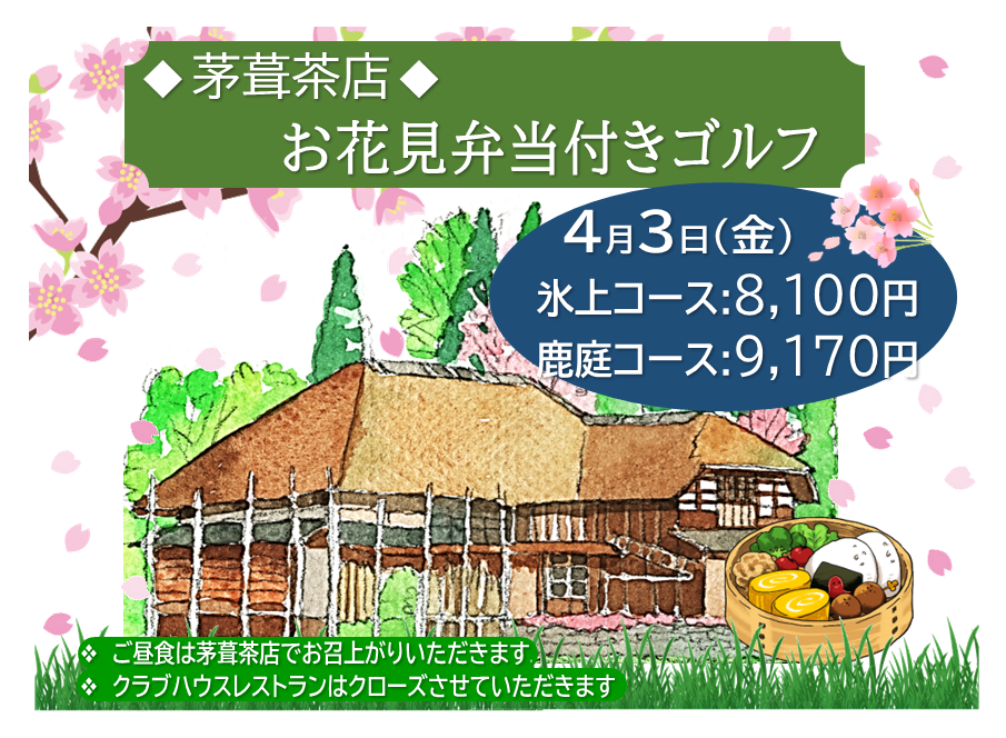 2026 4月 3日 茅葺茶店でお花見弁当付きゴルフ