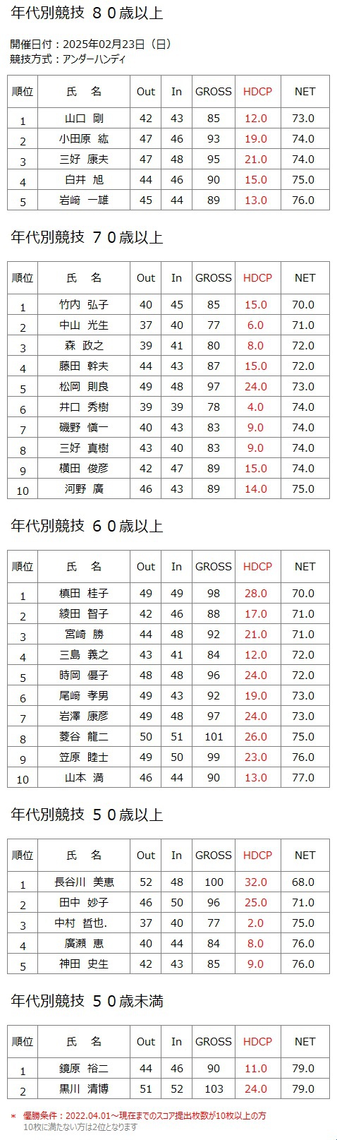 ホーム » コンペ・イベント » 2025年2月23日(日) 年代別競技