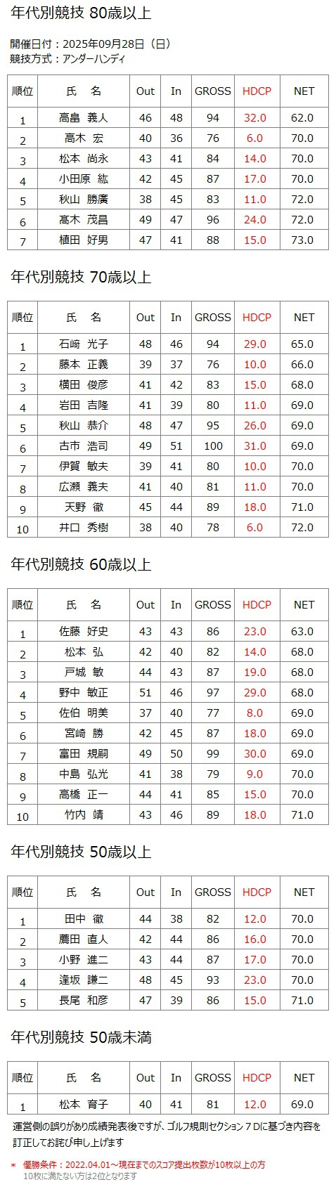 ホーム » コンペ・イベント » 2025年9月28日(日) 年代別競技