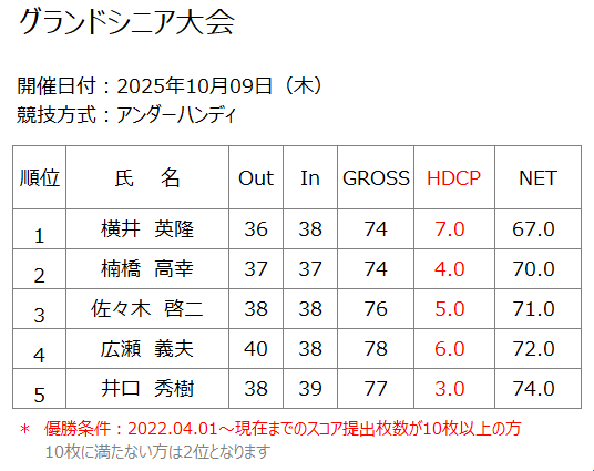 ホーム » コンペ・イベント » 2025年10月9日(木) グランドシニア大会