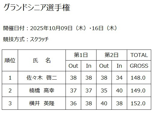ホーム » コンペ・イベント » 2025年10月16日(木) グランドシニア選手権兼大会