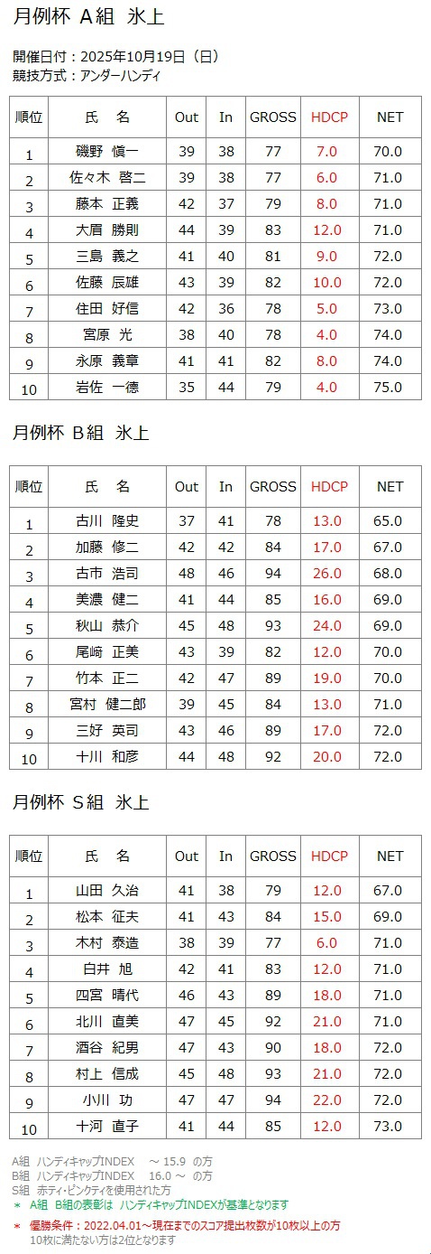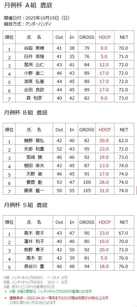 ホーム » コンペ・イベント » 2025年10月19日(日) 月例杯