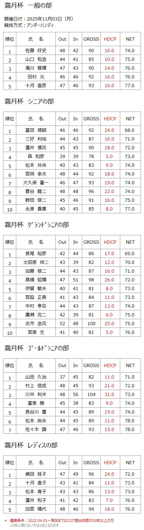 ホーム » コンペ・イベント » 2025年11月3日(月) 霜月杯