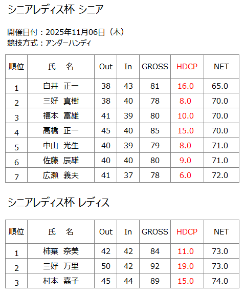 ホーム » コンペ・イベント » 2025年11月6日(木) シニアレディス杯