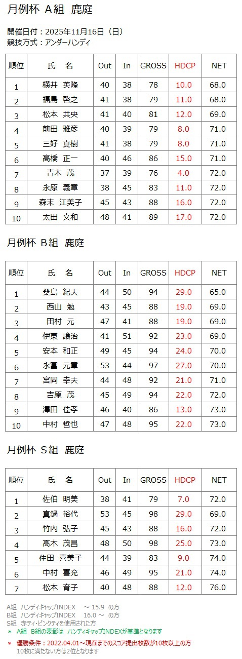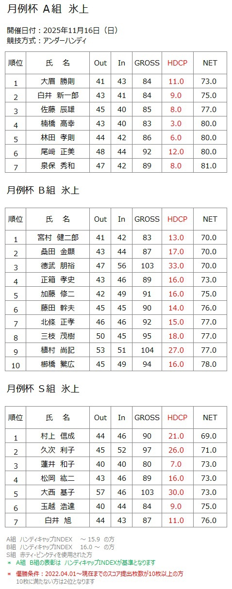 ホーム » コンペ・イベント » 2025年11月16日(日) 月例杯