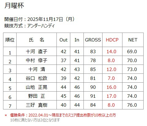 ホーム » コンペ・イベント » 2025年11月17日(月) 月曜杯