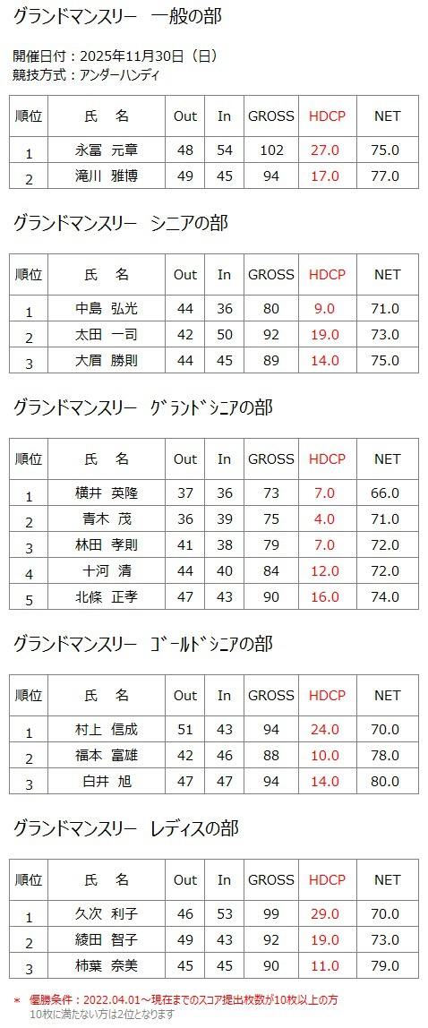 ホーム » コンペ・イベント » 2025年11月30日(日) グランドマンスリー