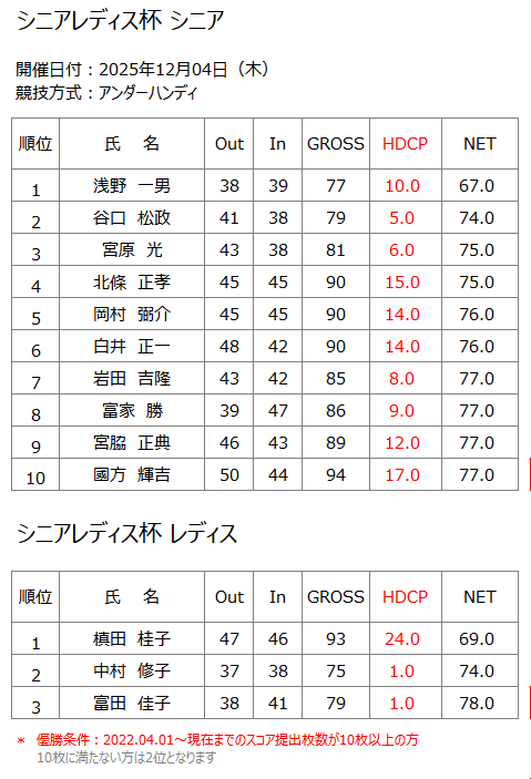 ホーム » コンペ・イベント » 2025年12月4日(木) シニアレディス杯
