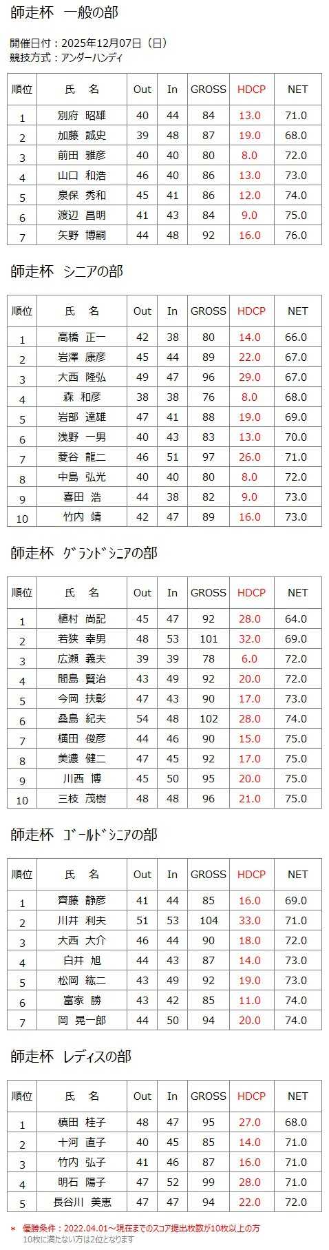 ホーム » コンペ・イベント » 2025年12月7日(日) 師走杯