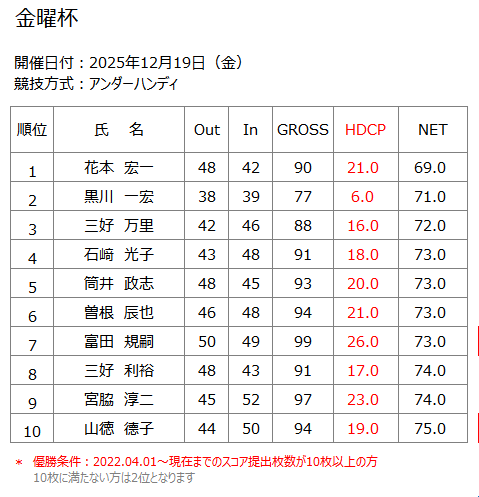 ホーム » コンペ・イベント » 2025年12月19日(金) 金曜杯
