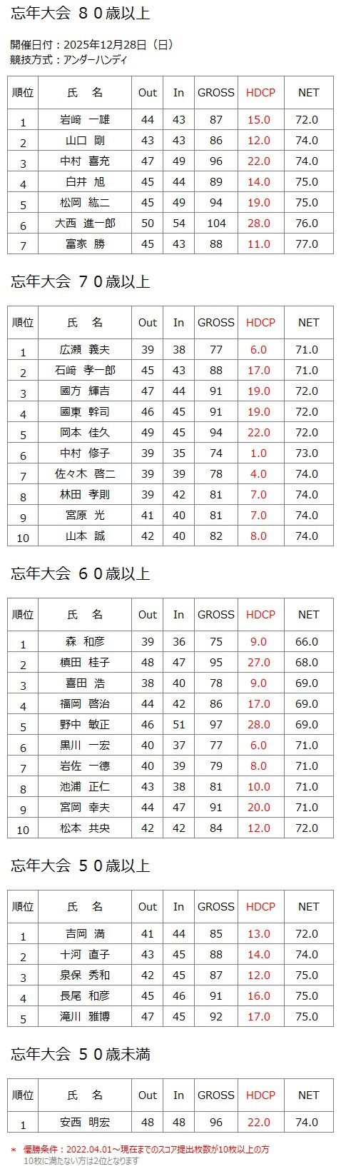 ホーム » コンペ・イベント » 2025年12月28日(日) 忘年大会