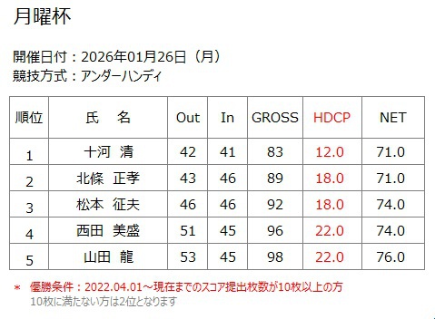ホーム » コンペ・イベント » 2026年1月26日(月) 月曜杯