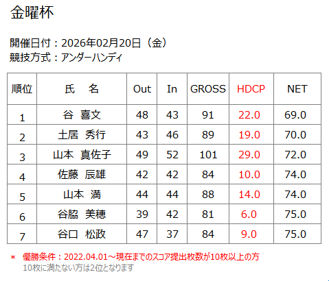 ホーム » コンペ・イベント » 2026年2月20日(金) 金曜杯