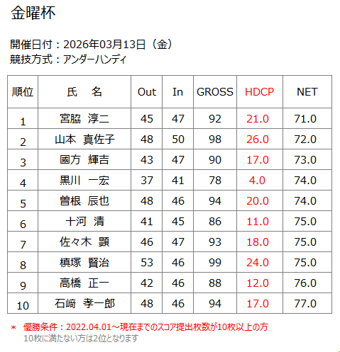 ホーム » コンペ・イベント » 2026年3月13日(金) 金曜杯