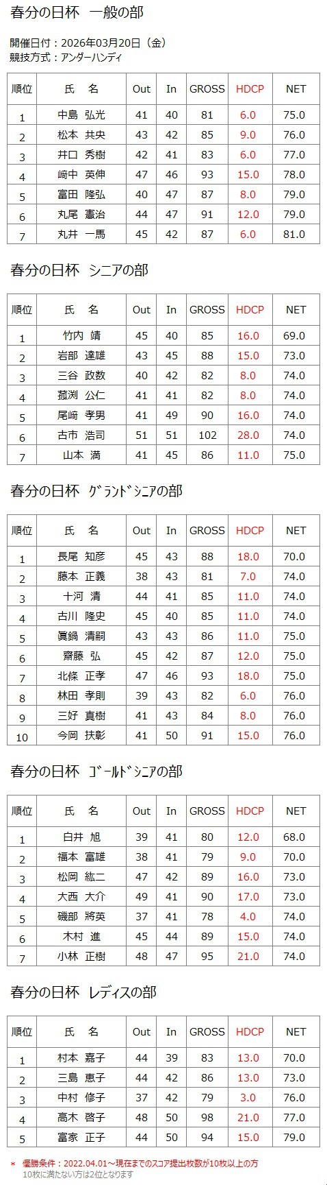 ホーム » コンペ・イベント » 2026年3月20日(金) 春分の日杯