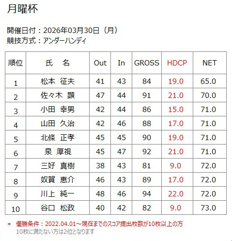 ホーム » コンペ・イベント » 2026年3月30日(月) 月曜杯