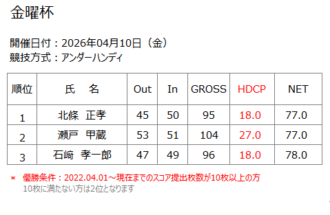 ホーム » コンペ・イベント » 2026年4月10日(金) 金曜杯